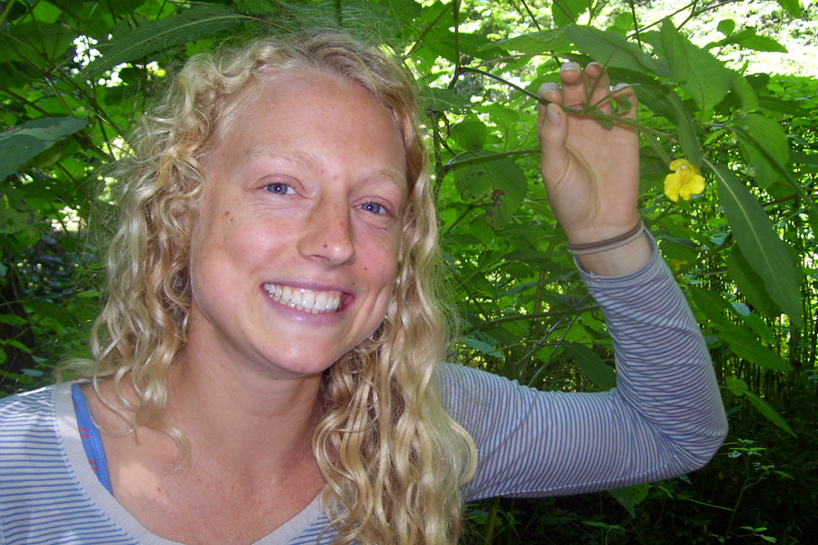 The intention for this summer day was for my apprentice, Jamie, and I to harvest the aerial parts of jewelweed in all of its abundance and learn more about her medicine. Ice cube trays full of fresh juice from the stem and leaves would be frozen, popped into baggies and stored in the freezer awaiting the aftermath of someone’s unfortunate encounter with poison ivy, oak or sumac. Even an insect bite or a reactive sting from our dear friend stinging nettle can be soothed by the astringent and anti-inflammatory combination of jewelweed along with the numbing effect of ice.